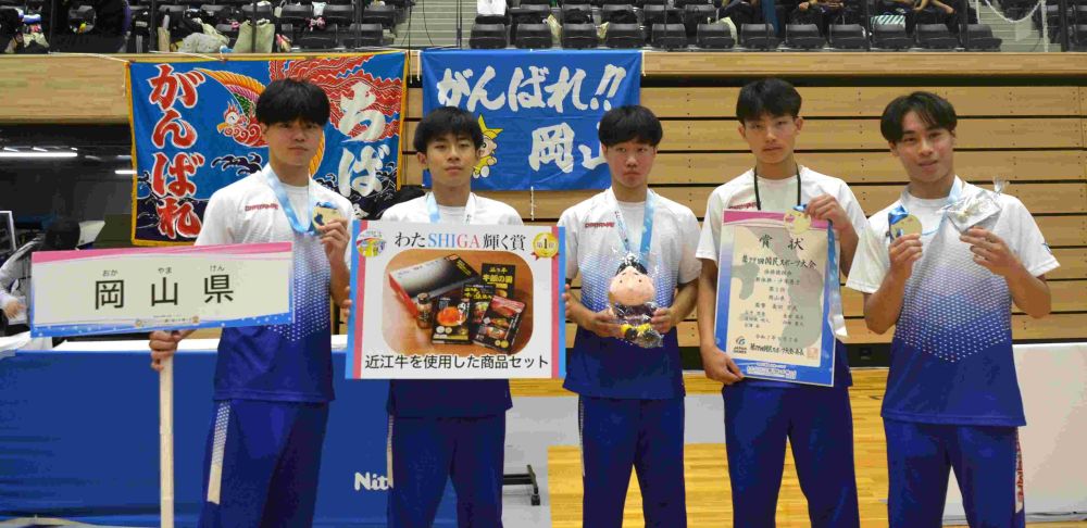 新体操少年男子で優勝した岡山チーム=7日、滋賀アリーナ