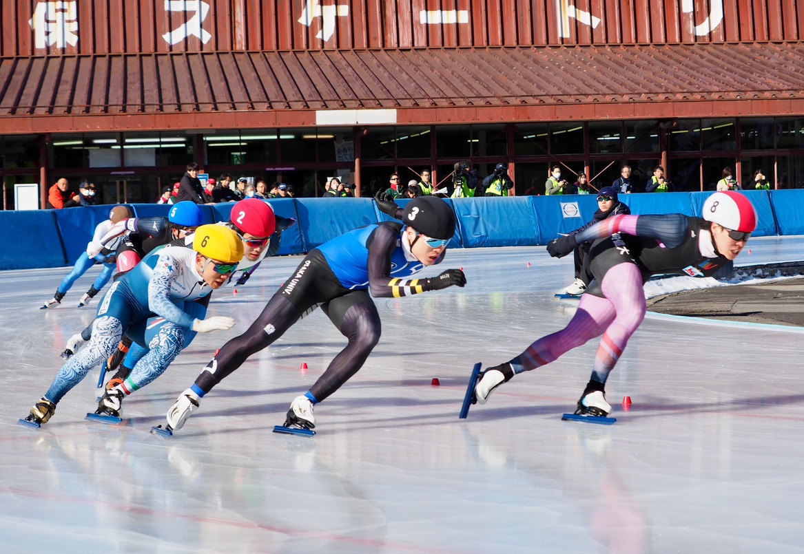 今大会の成年男子1500メートルでも優勝した松津は落ち着いたスタートを切り、前へ出るタイミングをうかがった。群馬の選手と最後の直線勝負になったが、伸びのある滑りで勝利をもぎ取った。